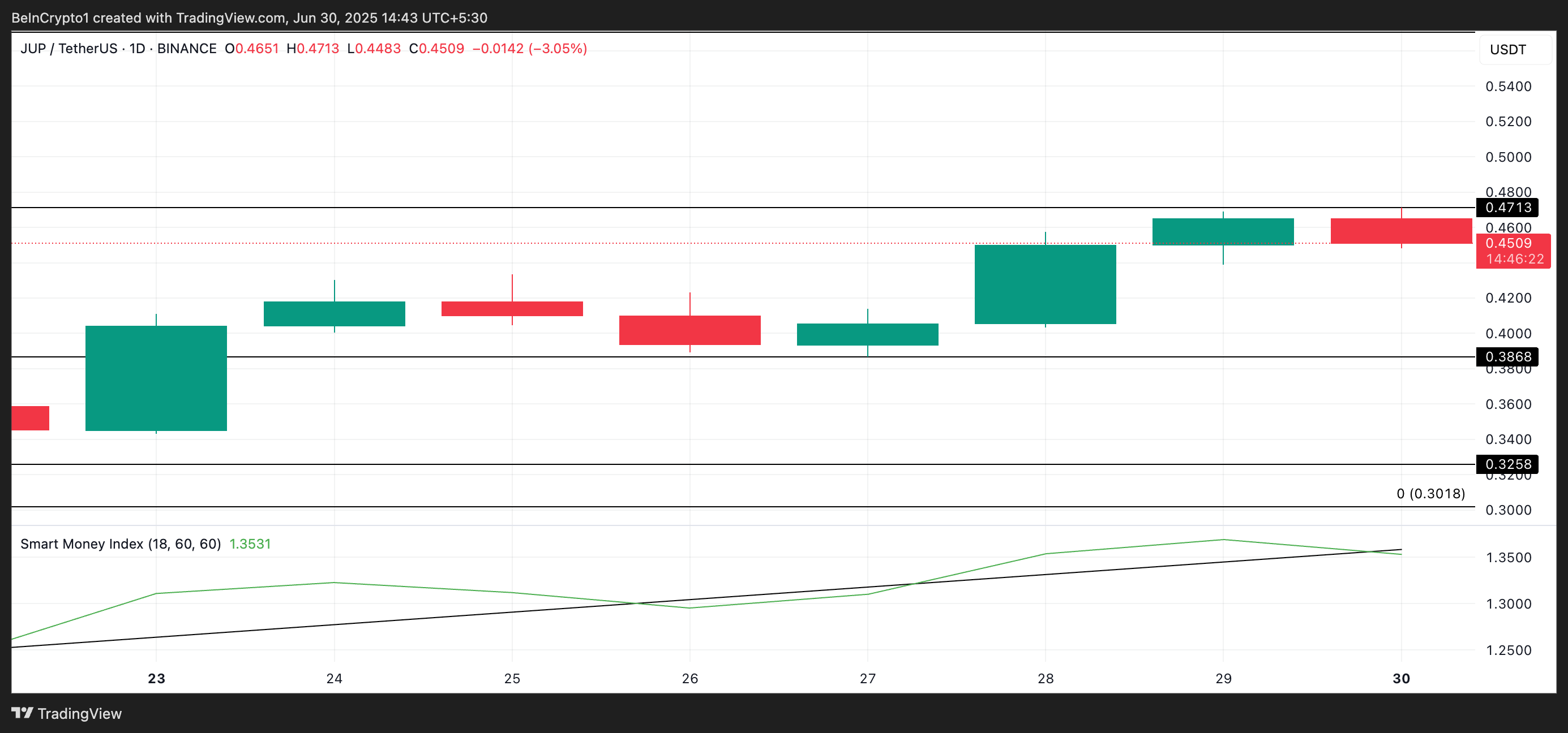 Se la domanda continuasse ad aumentare, il prezzo di JUP potrebbe superare $0,47.