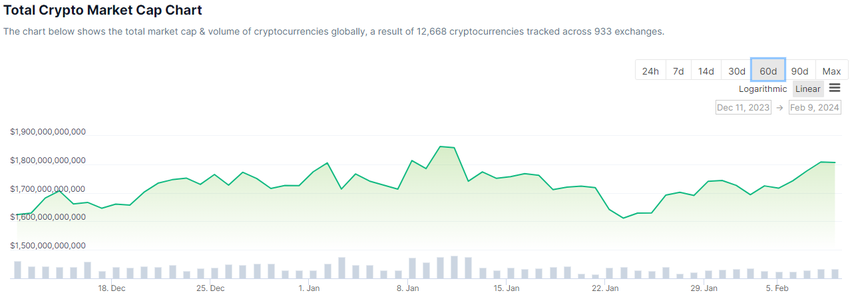 I mercati delle criptovalute chiudono la settimana in verde con un guadagno del 2,5%, portando la capitalizzazione totale a 1,83 trilioni di dollari.