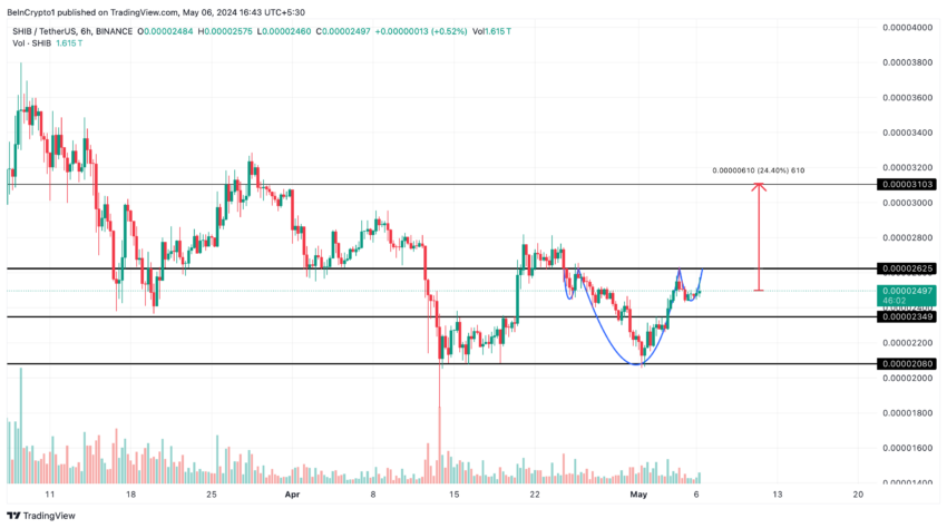 Una recente analisi tecnica di BeInCrypto ha suggerito un potenziale aumento del 15% del prezzo di SHIB, puntando a 0,00002625$. Dopo aver raggiunto questo livello, il token ha registrato un modesto calo di circa il 4%, riflettendo la continua volatilità del mercato. Tuttavia, SHIB sta ora formando un pattern grafico testa e spalla inverso.