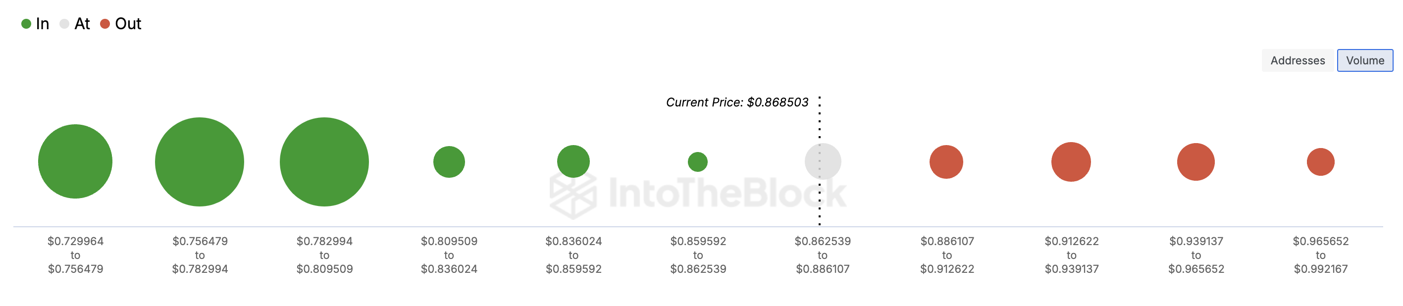 Attualmente, l’IOMAP di ADA mostra livelli di supporto forti che superano le zone di resistenza, rafforzando il potenziale per il suo prezzo di salire ulteriormente.