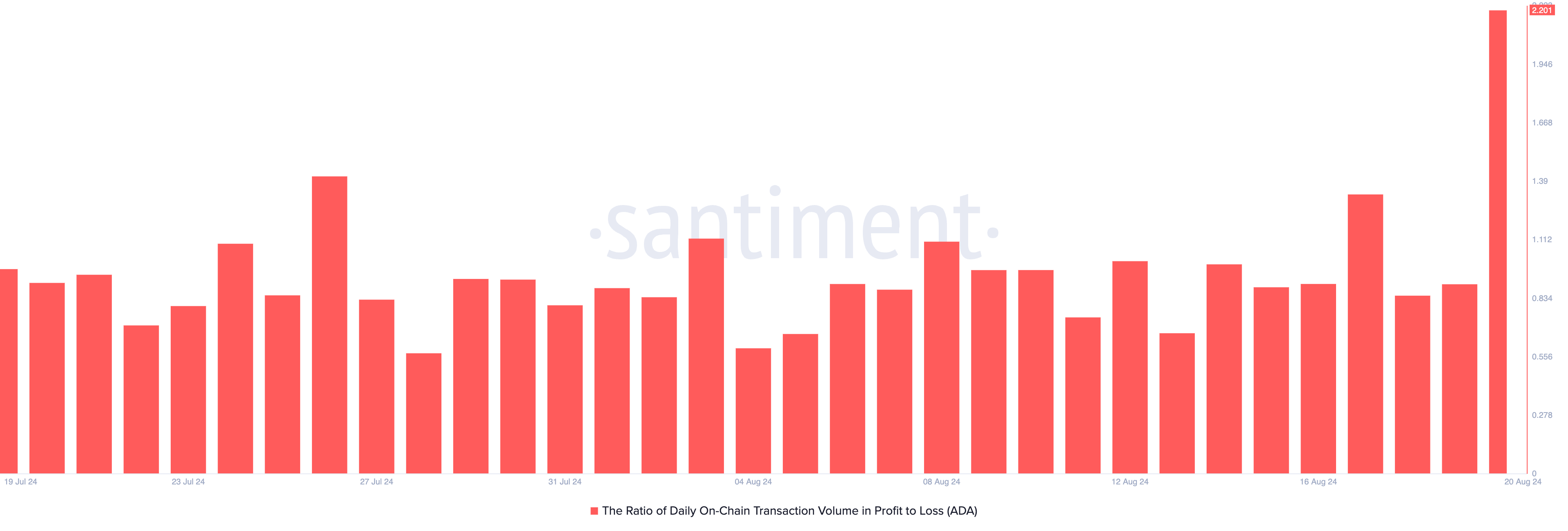Ciò indica che per ogni transazione di ADA conclusa in perdita, 2,20 transazioni hanno riportato un profitto.