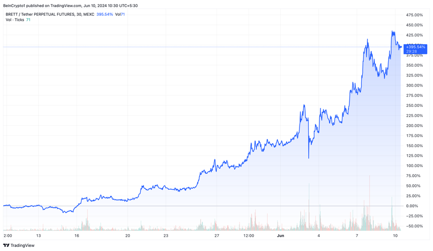 Dopo la conferma della fuga di notizie, il valore di BRETT si è impennato, segnando un aumento di quasi il 400% in soli 30 giorni. Questo aumento significativo ha rafforzato la presenza di BRETT sul mercato e ha portato la sua valutazione da 1,66 miliardi di dollari a ben 1,92 miliardi di dollari. Inoltre, durante il fine settimana, BRETT ha raggiunto nuovi massimi storici.
