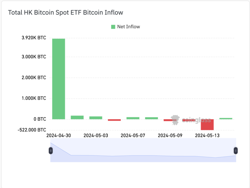 Sin dal suo lancio, gli ETF di Hong Kong hanno attirato l’attenzione grazie alla partecipazione di importanti gestori patrimoniali come Harvest Global, HashKey Capital e Bosera Asset Management come emittenti. Tuttavia, la loro performance non può ancora essere paragonata a quella degli ETF statunitensi. Secondo i dati di Coinglass, il 14 maggio gli ETF su Bitcoin a Hong Kong hanno registrato un afflusso di 60,52 BTC dopo tre giorni di deflusso.