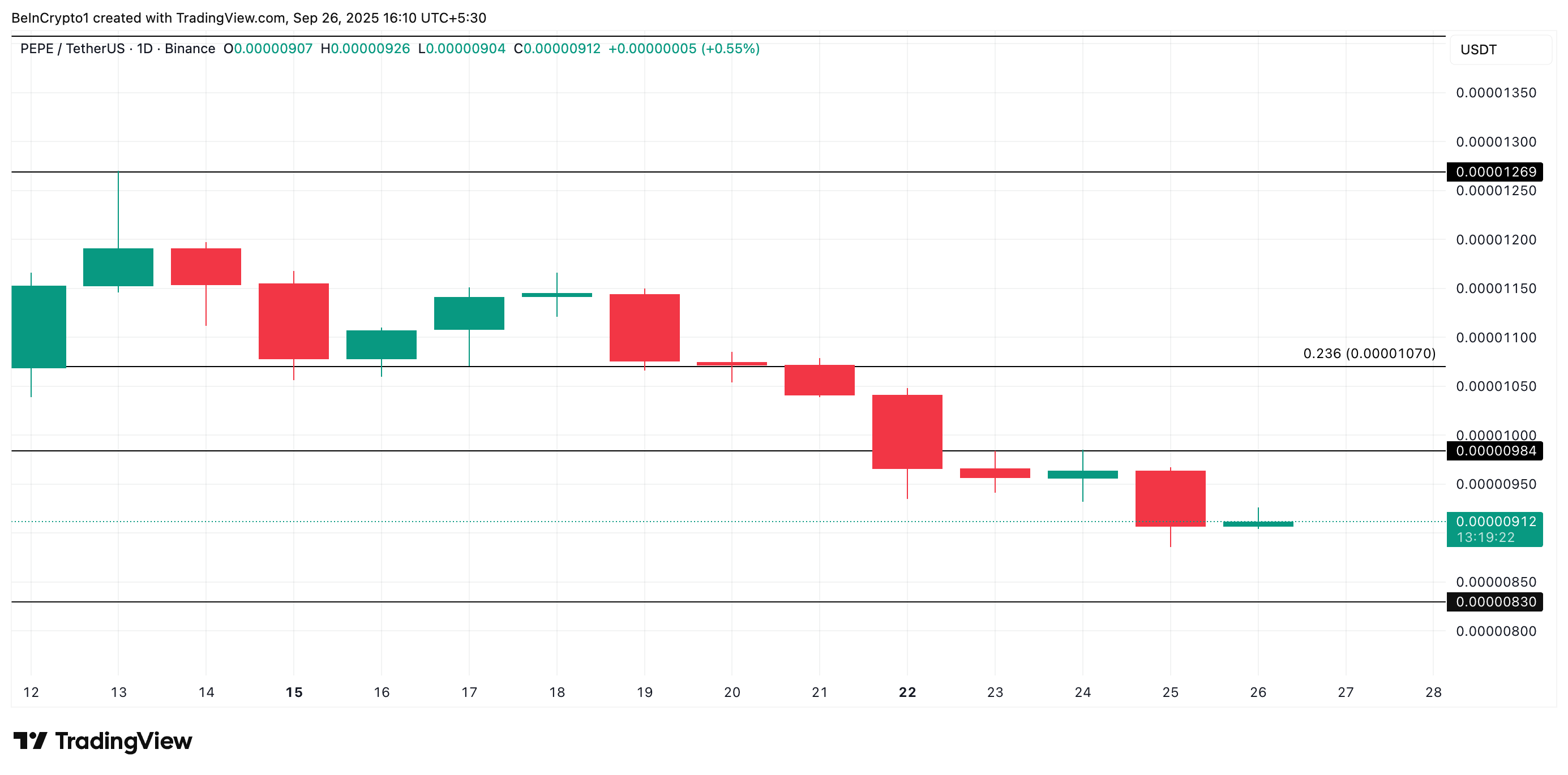 D’altra parte, un rallentamento degli acquisti delle balene potrebbe lasciare il token vulnerabile a ulteriori cali a breve termine. In questo scenario, il suo prezzo potrebbe scendere a $0,00000830.