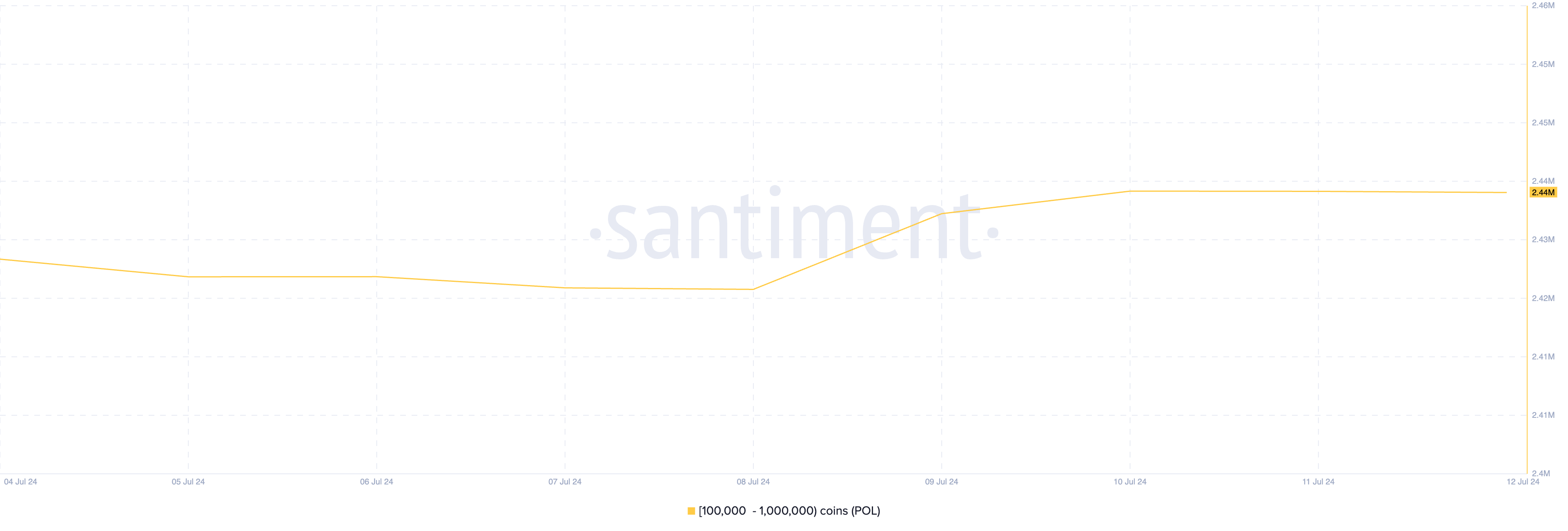 SponsoredSecondo Santiment, durante la settimana in esame, la fornitura di questa coorte di investitori è aumentata di 220.000 token POL.