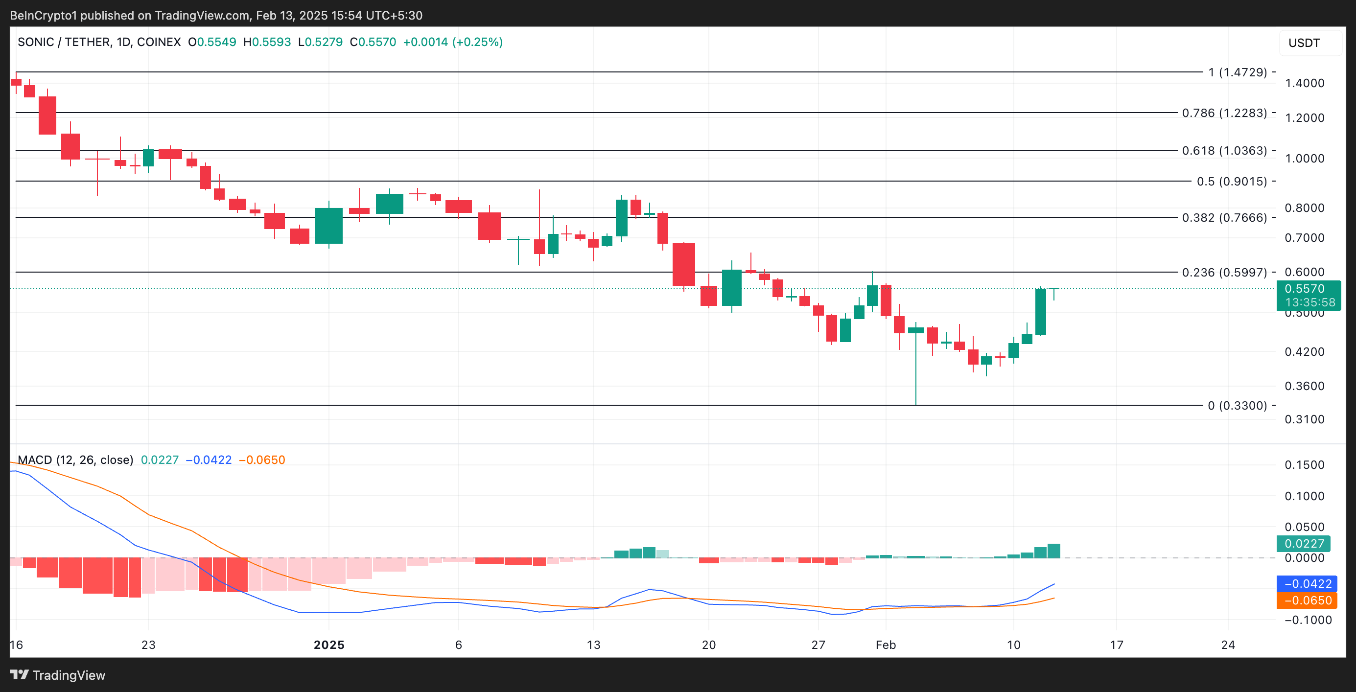 In questo scenario, il valore di Sonic potrebbe superare $0,59 per scambiare a $0,76.