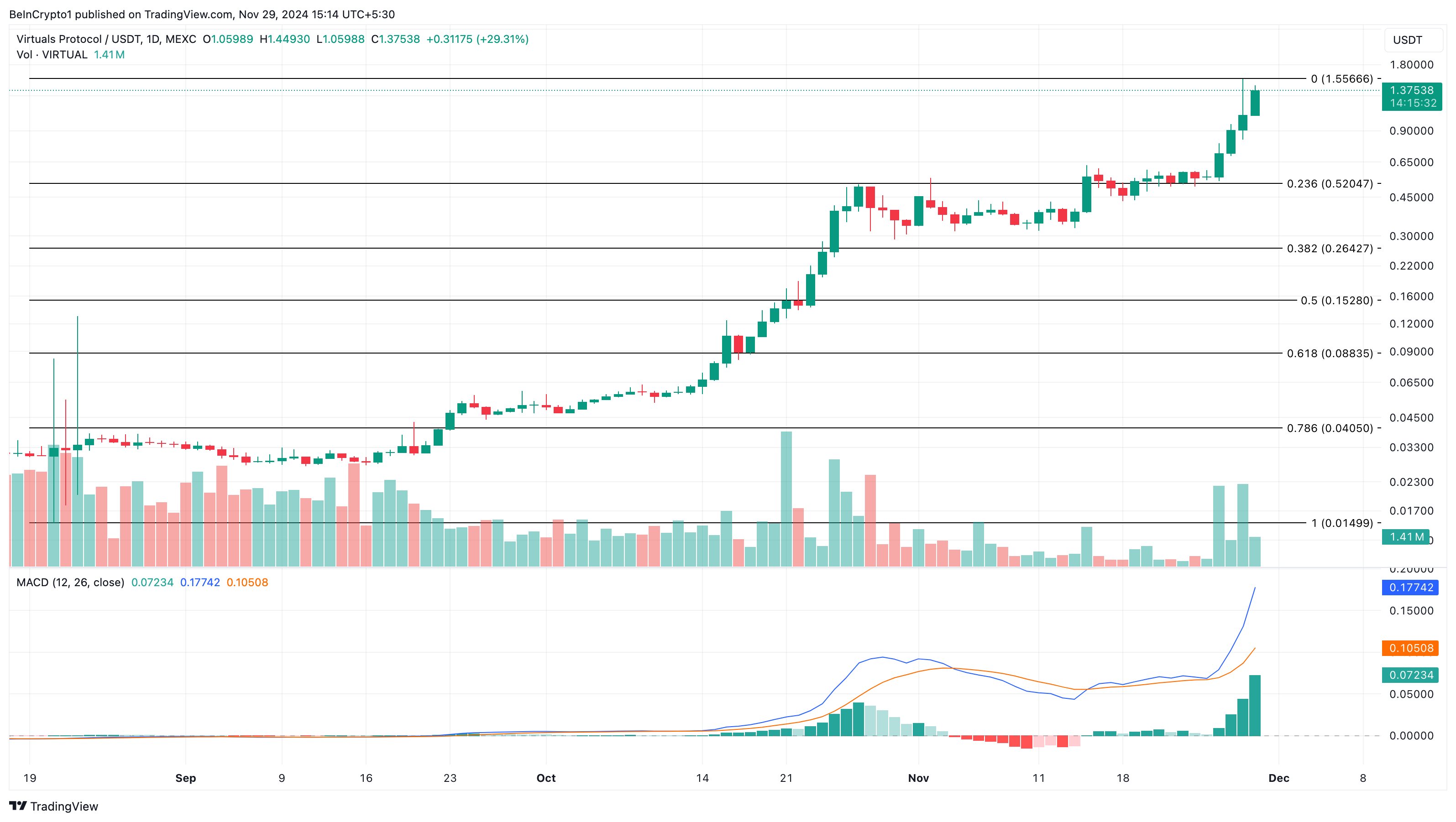 Analisi giornaliera di Virtuals Protocol. Fonte: TradingView