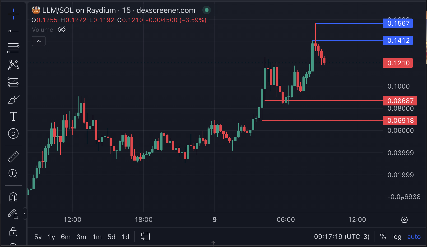 Lanciato solo un giorno e mezzo fa su Pumpfun e rapidamente passato a Raydium, LLM è diventato una delle altcoin più di tendenza nelle ultime 24 ore. La moneta di intelligenza artificiale è salita di un impressionante 138% durante questo periodo, spingendo la sua capitalizzazione di mercato a circa 120 milioni USD.