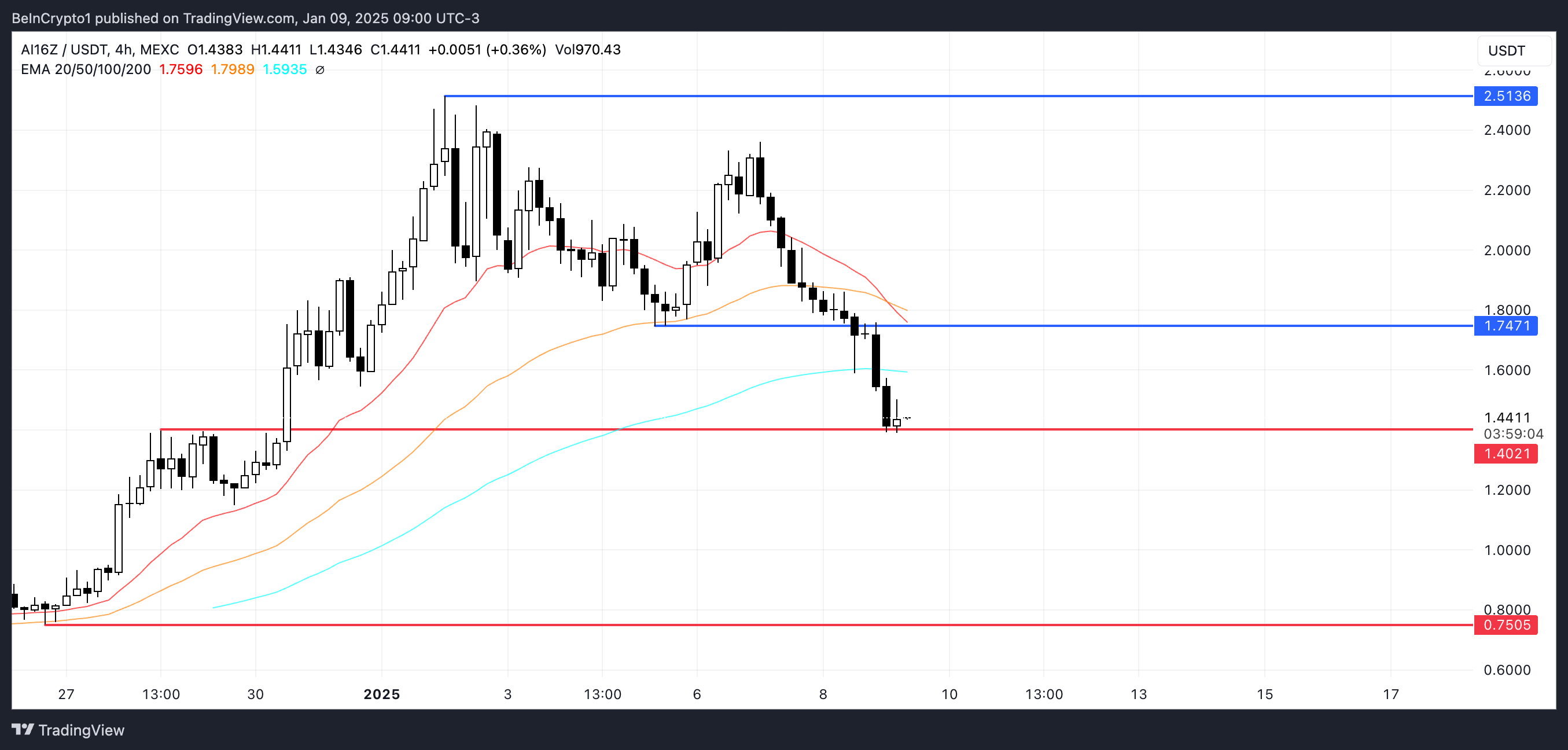 D’altra parte, un’inversione della tendenza attuale potrebbe innescare un rinnovato slancio rialzista. Se AI16Z difende il suo supporto e sale per testare la resistenza a 1.74 USD, superare questo livello potrebbe segnalare una forte ripresa. Un tale movimento potrebbe spingere AI16Z verso 2.5 USD, possibilmente raggiungendo nuovi massimi storici.