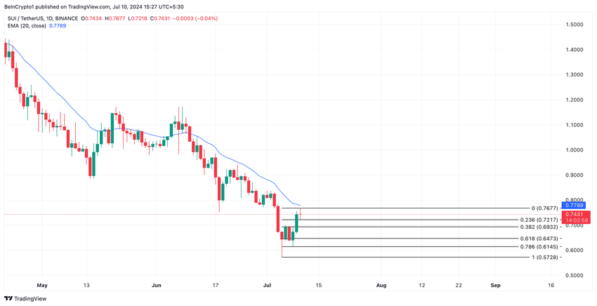 Tuttavia, le letture dei movimenti di prezzo su un grafico a un giorno suggeriscono un’impennata dell’attività di acquisto. Ad esempio, la tendenza del prezzo di SUI verso la sua media mobile esponenziale (EMA) a 20 giorni sembra pronta ad attraversarla.