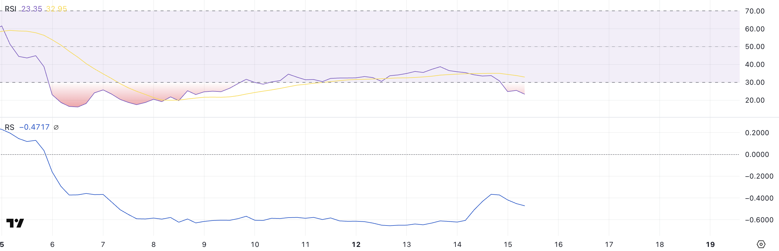 L’Indice di Forza Relativa (RSI) di BSW è attualmente a 23,95—ben al di sotto del livello 30 che segnala condizioni di ipervenduto. Questo indica che l’altcoin potrebbe essere pronta per un rimbalzo dopo una vendita aggressiva.