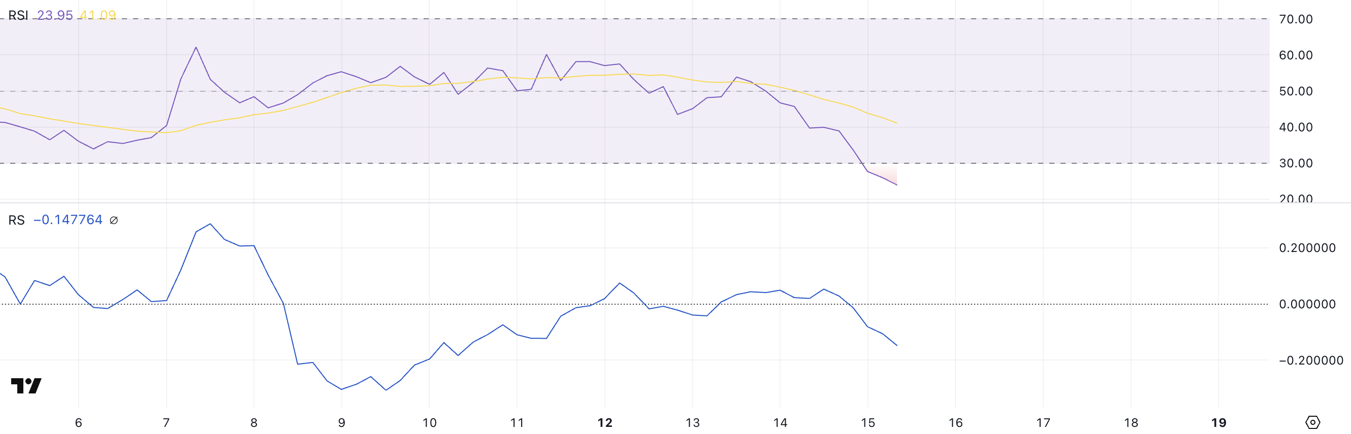 Tutti e tre i token hanno letture RSI inferiori a 25, indicando una pressione di vendita estrema. I loro metriche di Forza Relativa (RS) mostrano che hanno sottoperformato il mercato generale. Sebbene un rimbalzo non sia garantito, queste condizioni tecniche spesso precedono rally di sollievo a breve termine se il sentiment inizia a riprendersi.