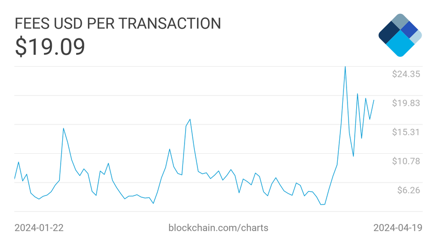 L’introduzione di Runes ha provocato un’impennata nell’attività della rete Bitcoin, con conseguente congestione e aumento delle commissioni. In effetti, la commissione minima per le transazioni supera ora gli 840 sat/vB, pari a circa 76 dollari, e ha anche incrementato le entrate dei blocchi, con una media di 21,74 BTC per blocco dopo l’halving.