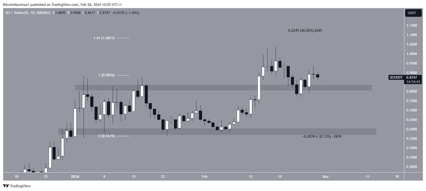 Nonostante le previsioni rialziste sul prezzo di SEI, una chiusura al di sotto di 0,82 dollari può innescare un calo del 32% fino al supporto più vicino a 0,60 dollari.