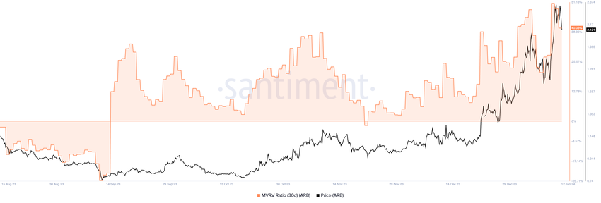 - Arbitrum (ARB) presenta un MVRV a 30 giorni del 40,03%.