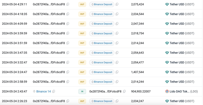 La whale ha anche depositato circa 20 milioni di dollari su Binance, acquistando oltre 9,3 milioni di dollari in Lido (LDO), 6,7 milioni di dollari in Uniswap (UNI), 5,4 milioni di dollari in Aave (AAVE) e altre altcoin.