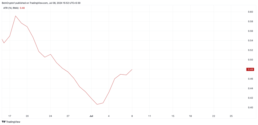 Quando il suo valore aumenta, suggerisce una maggiore volatilità del mercato e indica la possibilità di un’oscillazione dei prezzi in entrambe le direzioni. Al momento della stampa, l’ATR di APT è pari a 0,48. La tendenza al rialzo è in atto dal 1° luglio.
