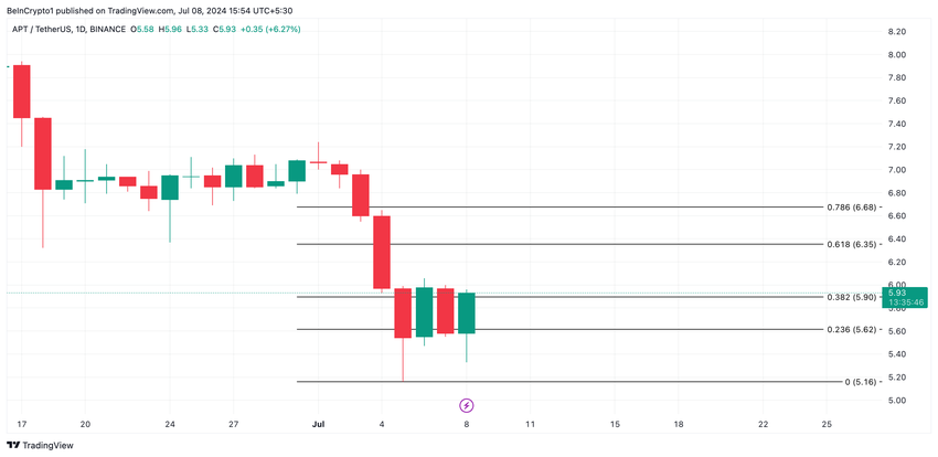 I movimenti opposti del prezzo di APT e del suo volume di scambi giornalieri creano una divergenza ribassista, suggerendo che più partecipanti al mercato stanno vendendo attivamente l’asset.