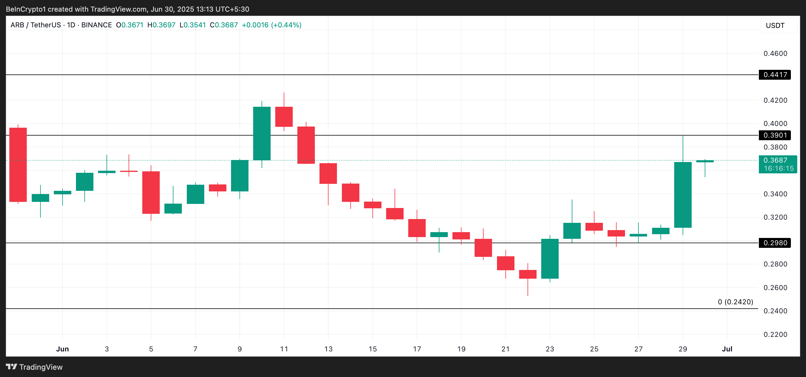 Se il rally di ARB continua a mancare di un sufficiente supporto rialzista, una rottura al di sotto di questo livello rimane possibile.