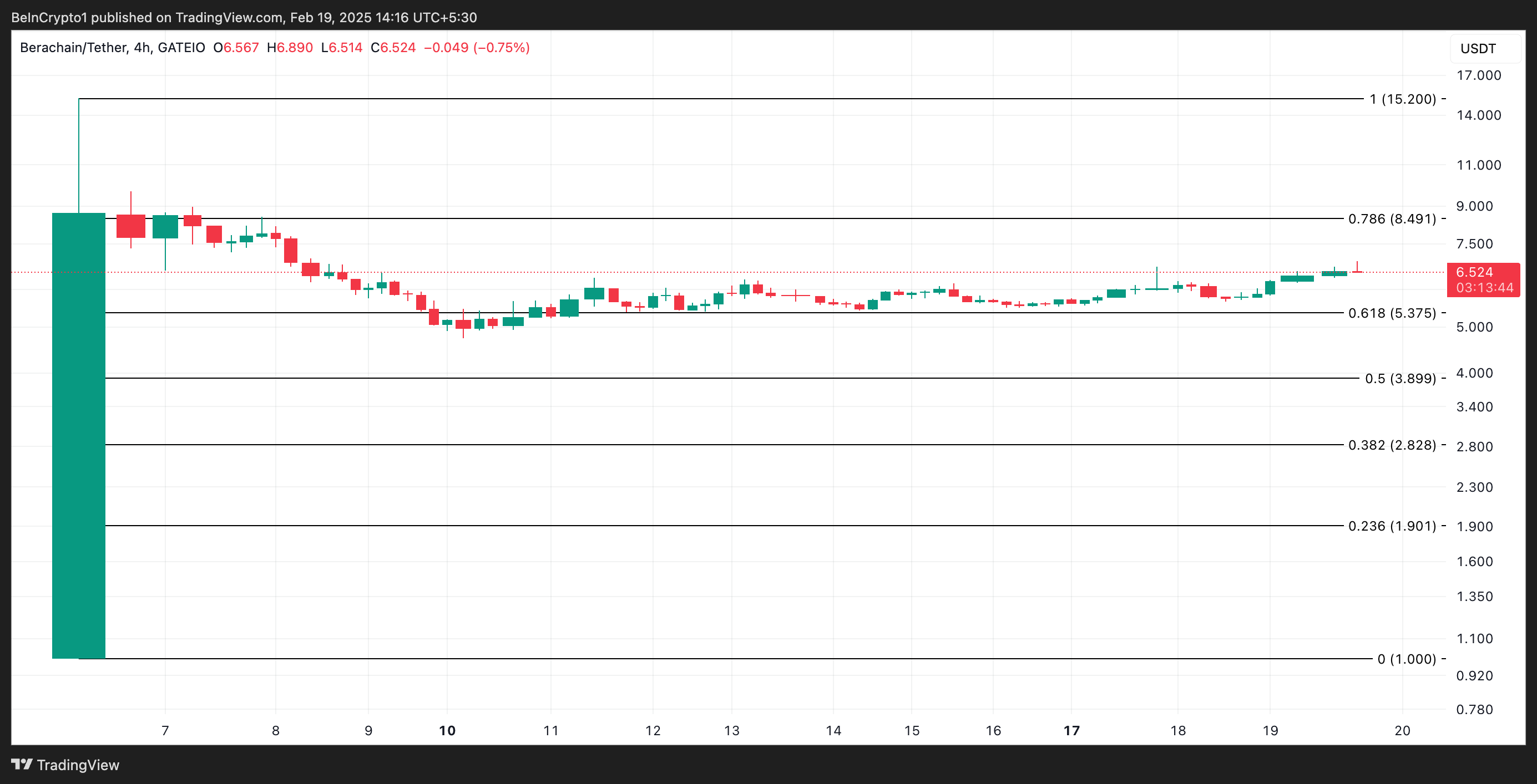 Attualmente BERA viene scambiata a $6,52, al di sotto della resistenza critica formata a $8,49. Se la domanda per l’altcoin aumenta, potrebbe superare questa resistenza e tentare di riconquistare il suo massimo storico di $15,20.