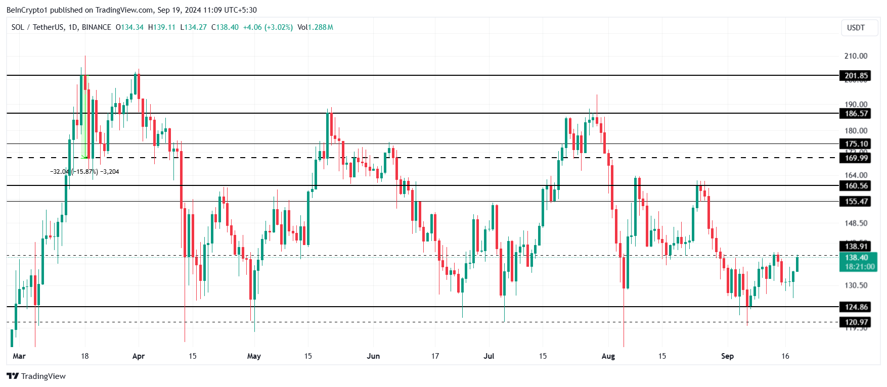 L’interesse istituzionale in Solana è in aumento, soprattutto dopo un agosto relativamente ribassista. Questo mese, le istituzioni hanno investito oltre 9,7 milioni di USD in SOL, con 3,8 milioni di USD arrivati nella settimana che si è conclusa il 13 settembre. Questi forti afflussi da parte degli investitori istituzionali indicano una rinnovata fiducia nel potenziale a lungo termine di Solana e potrebbero agire come forza trainante dietro la crescita del suo prezzo.