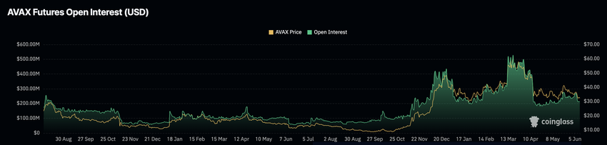 Una diminuzione, invece, suggerisce un aumento delle posizioni chiuse e un maggiore deflusso di denaro. Al momento in cui scriviamo, l’open interest di AVAX era di 211,64 milioni di dollari. Il 7 giugno, quando il prezzo di AVAX era di 35 dollari, l’open interest era molto più alto.