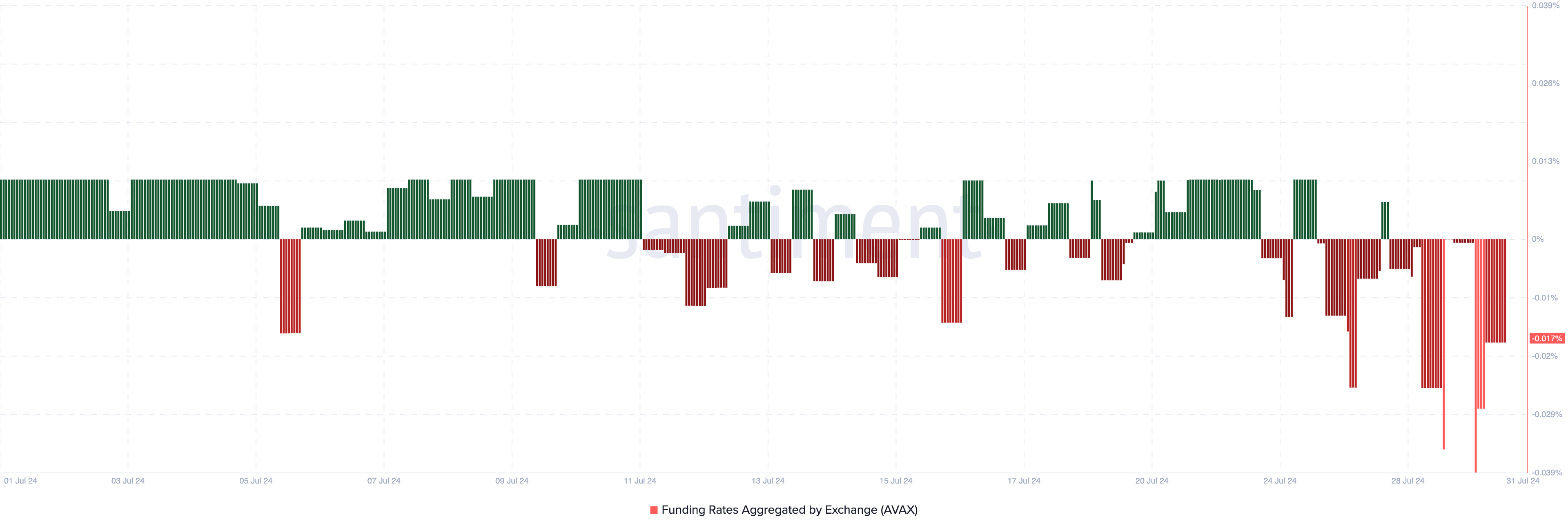 Al momento della stampa, il tasso di finanziamento di AVAX è pari a -0,017%, il che indica che la maggior parte delle posizioni sul mercato sono corte, ovvero contratti che tendono a diminuire il prezzo.