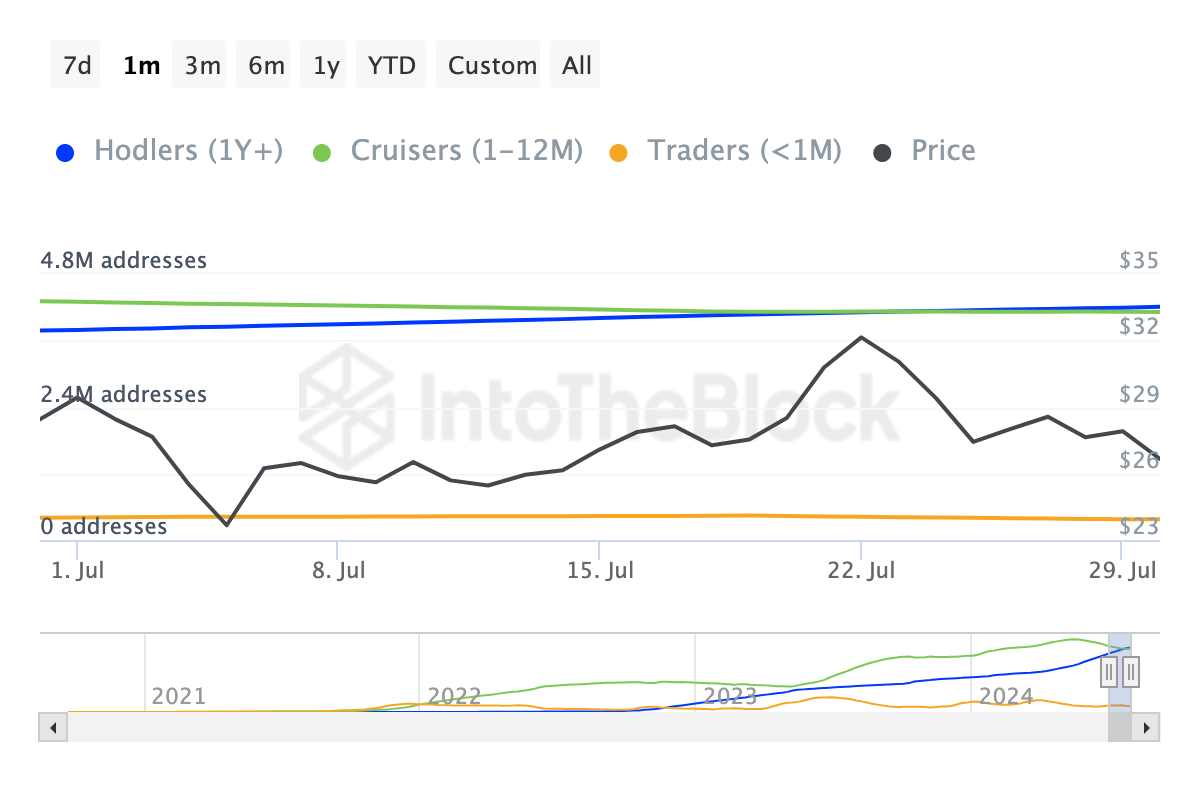 Un altro indicatore che supporta questa tesi è Avalanche’s Addresses by Time Held. Questo indicatore fornisce indicazioni sulla durata del periodo in cui i possessori di criptovaluta si aggrappano al token.
