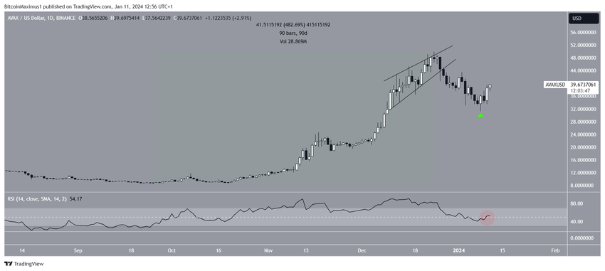 La caduta del prezzo di AVAX ha causato la rottura di un cuneo ascendente e ha portato a un minimo di 31,20 dollari l’8 gennaio 2024. AVAX ha creato una candela rialzista lo stesso giorno (icona verde) e da allora è aumentato.