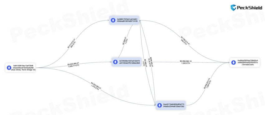 La società di analisi della sicurezza PeckShield, che sta monitorando la situazione, ha riportato che un “portafoglio whale” collegato a Zirlin è stato violato. L’aggressore ha prelevato circa 3.248 ETH dal Ronin Bridge e li ha successivamente trasferiti a Tornado Cash.