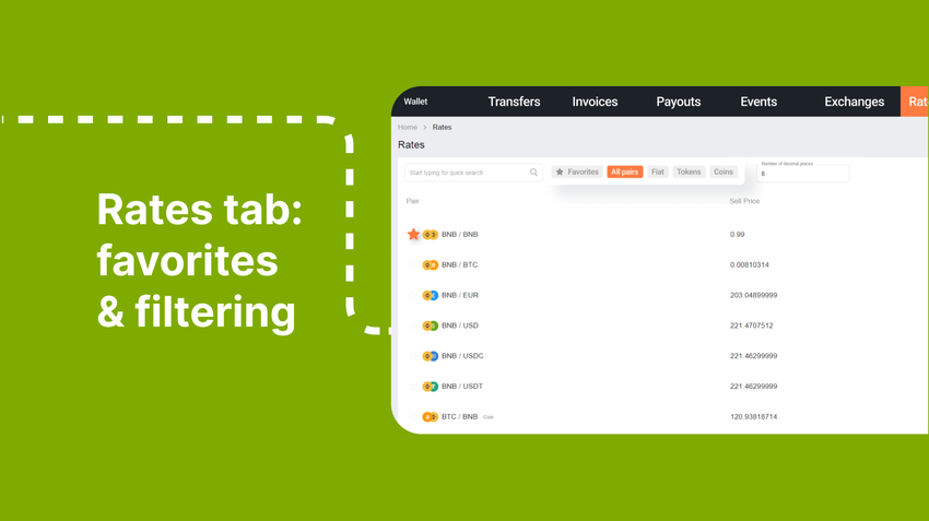 Nell’odierno mercato finanziario volatile, le monete stabili sono diventate un faro di stabilità. Prima del lancio della versione 17, B2BinPay supportava i pagamenti in una gamma selezionata di valute principali, tra cui BTC, USDT, USDC, USD ed EUR. L’ultimo aggiornamento fa un ulteriore passo avanti, aggiungendo TrueUSD (TUSD) ed Euro Coin (EUROC) ai portafogli degli esercenti.