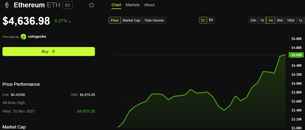 Al momento della pubblicazione, Ethereum era scambiato a $4.636, in aumento di oltre l’8% nelle ultime 24 ore. Ciò significa che l’indirizzo della balena 0x8c58 è a poco più di 7% dalla liquidazione.