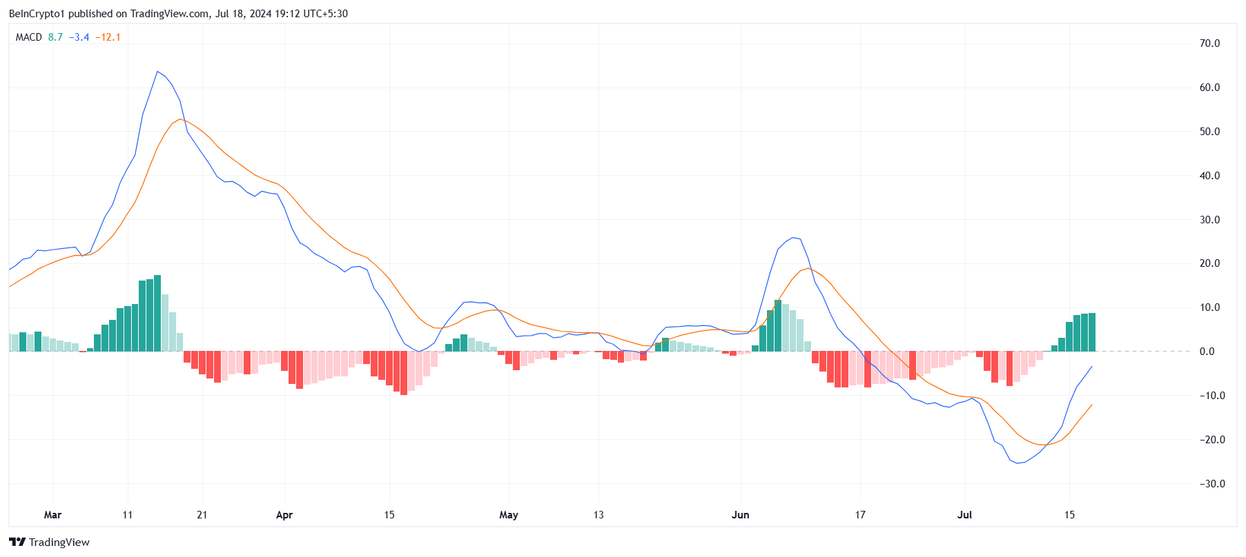 SponsoredTuttavia, l’indicatore MACD di Binance Coin, passato da un crossover ribassista a uno rialzista la scorsa settimana, sta continuando il suo slancio. Questo cambiamento segnala un potenziale trend rialzista per BNB, in quanto le forze rialziste guadagnano forza.
