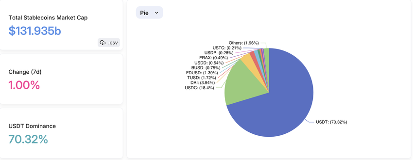 La schermata sottostante mostra che FDUSD ha una quota di mercato di appena l’1,39%, mentre BUSD ha ancora una quota di mercato dello 0,75%. USDT di Tether rimane un attore dominante, con una quota di mercato di oltre il 70%.