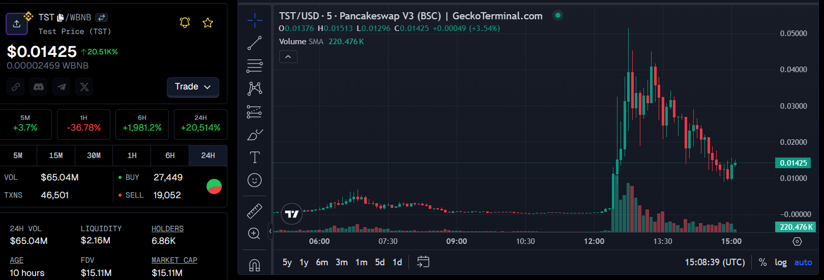 I dati su Gecko Terminal mostrano che TST rimane ben al di sopra del suo prezzo di debutto con una capitalizzazione di mercato di 15,1 milioni di dollari al momento della scrittura, ma l’azione del prezzo mostra un continuo incasso dei profitti.