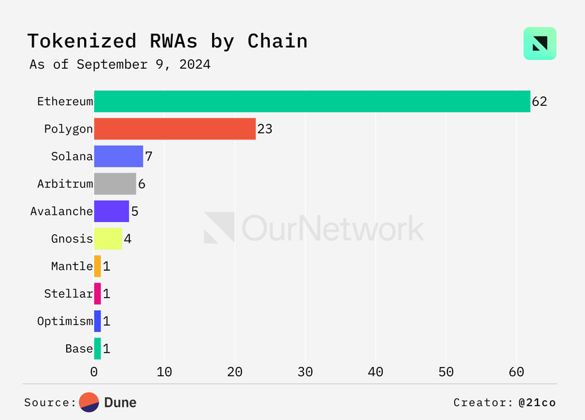 “Polygon è la seconda blockchain più grande per gli RWA tokenizzati, con i suoi 23 asset che seguono solo i 62 di Ethereum. Questo posiziona Polygon come un attore significativo nel settore — gli RWA della piattaforma hanno una capitalizzazione di mercato totale di 531,58 milioni USD,” ha scritto Noon.