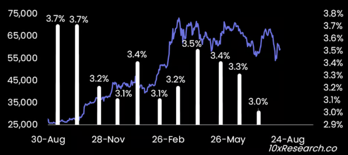 Gli analisti di 10x Research hanno anche notato che la direzione del Bitcoin è stata storicamente strettamente legata alle tendenze dell’inflazione, con l’asset che tipicamente si rialza quando l’inflazione diminuisce. Tuttavia, i recenti rilasci dell’IPC suggeriscono che questo schema potrebbe non essere sempre valido.