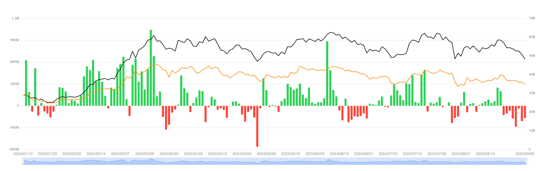 Tuttavia, nonostante questi guadagni, persistono delle sfide. Gli ETF Bitcoin negoziati negli Stati Uniti hanno sperimentato la loro più lunga serie di deflussi netti giornalieri dal loro debutto. Gli investitori hanno ritirato circa 1,2 miliardi USD da questi fondi in otto giorni all’inizio di settembre.