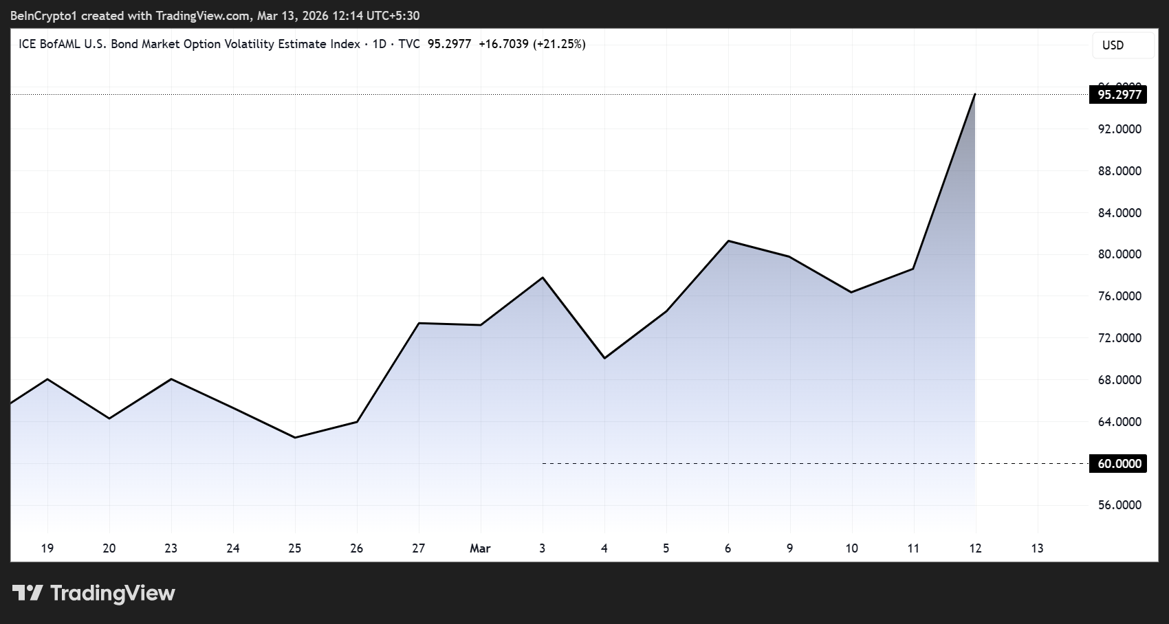 Questo disallineamento potrebbe non durare. Se la volatilità dei Treasury continuerà a salire in vista della riunione FOMC del 17-18 marzo, la pressione potrebbe riversarsi anche sulle posizioni crypto.