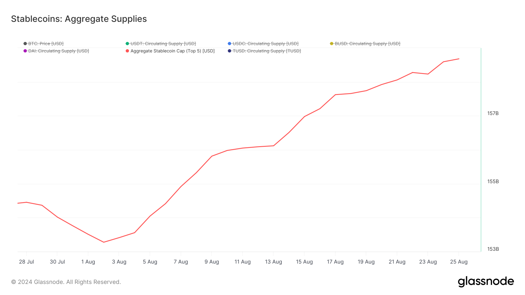 L’aumento della coniatura di stablecoin è un segnale rialzista perché indica una crescente domanda di criptovalute. Se più persone convertono la valuta fiat in stablecoin, acquistano effettivamente criptovalute.