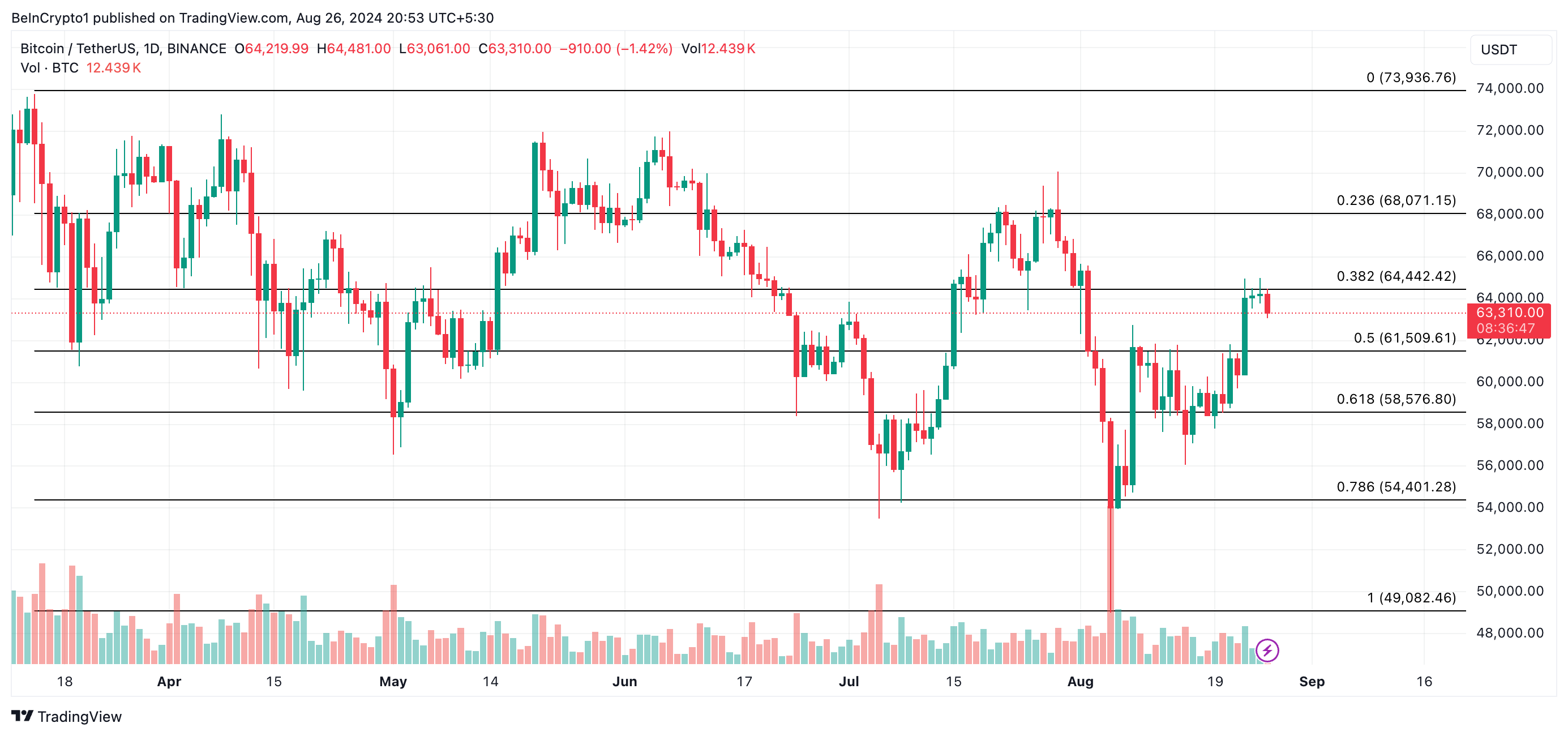 In questo momento, il Bitcoin (BTC) scambia a 63.632 dollari, con un aumento del 9% negli ultimi sette giorni.