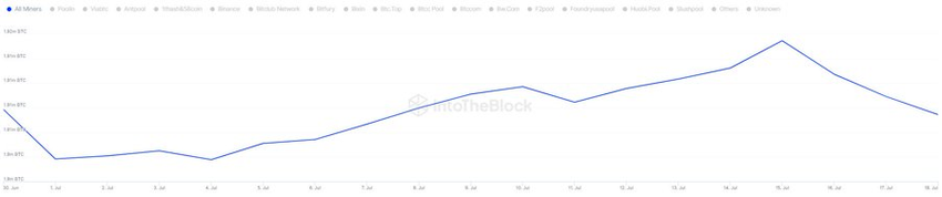 Tuttavia, questa tendenza si sta invertendo. Secondo IntoTheBlock, i minatori di Bitcoin hanno aumentato le loro partecipazioni questo mese. In particolare, hanno accumulato altri 4.500 BTC per un valore di circa 300 milioni di dollari.