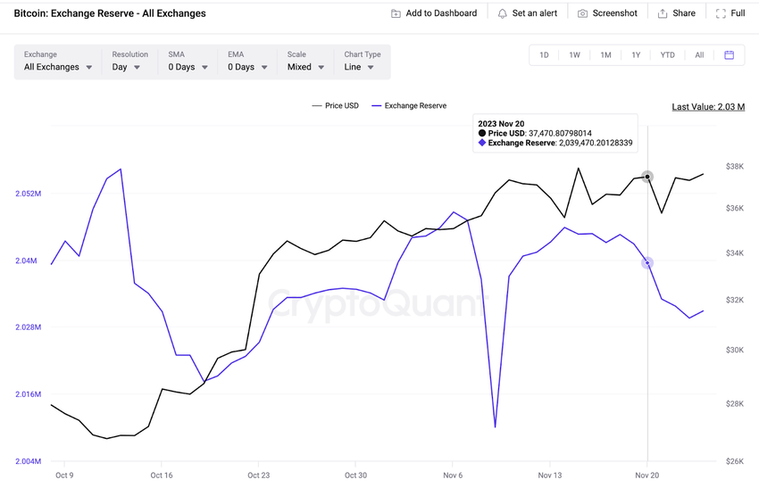 Con il prezzo del Bitcoin che attualmente si aggira intorno ai 37.500 dollari, gli 8.606 BTC rimossi dai piattaformadiscambio valgono circa 322 milioni di dollari. La stabilizzazione della domanda di mercato ha esercitato una pressione al rialzo sul prezzo del Bitcoin.