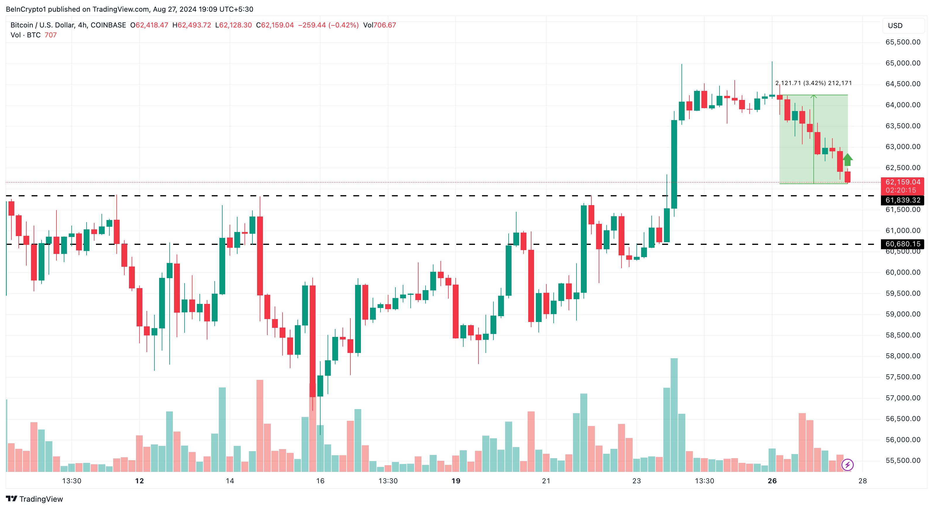 Previsione del prezzo del BTC: L’analisi a breve termine punta a 64.000 dollari