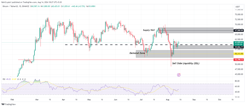 Il prezzo del Bitcoin (BTC) si mantiene sopra i 61.000 dollari mentre i dati sull’inflazione CPI degli Stati Uniti scendono al 2,9% a luglio, al di sotto delle aspettative.