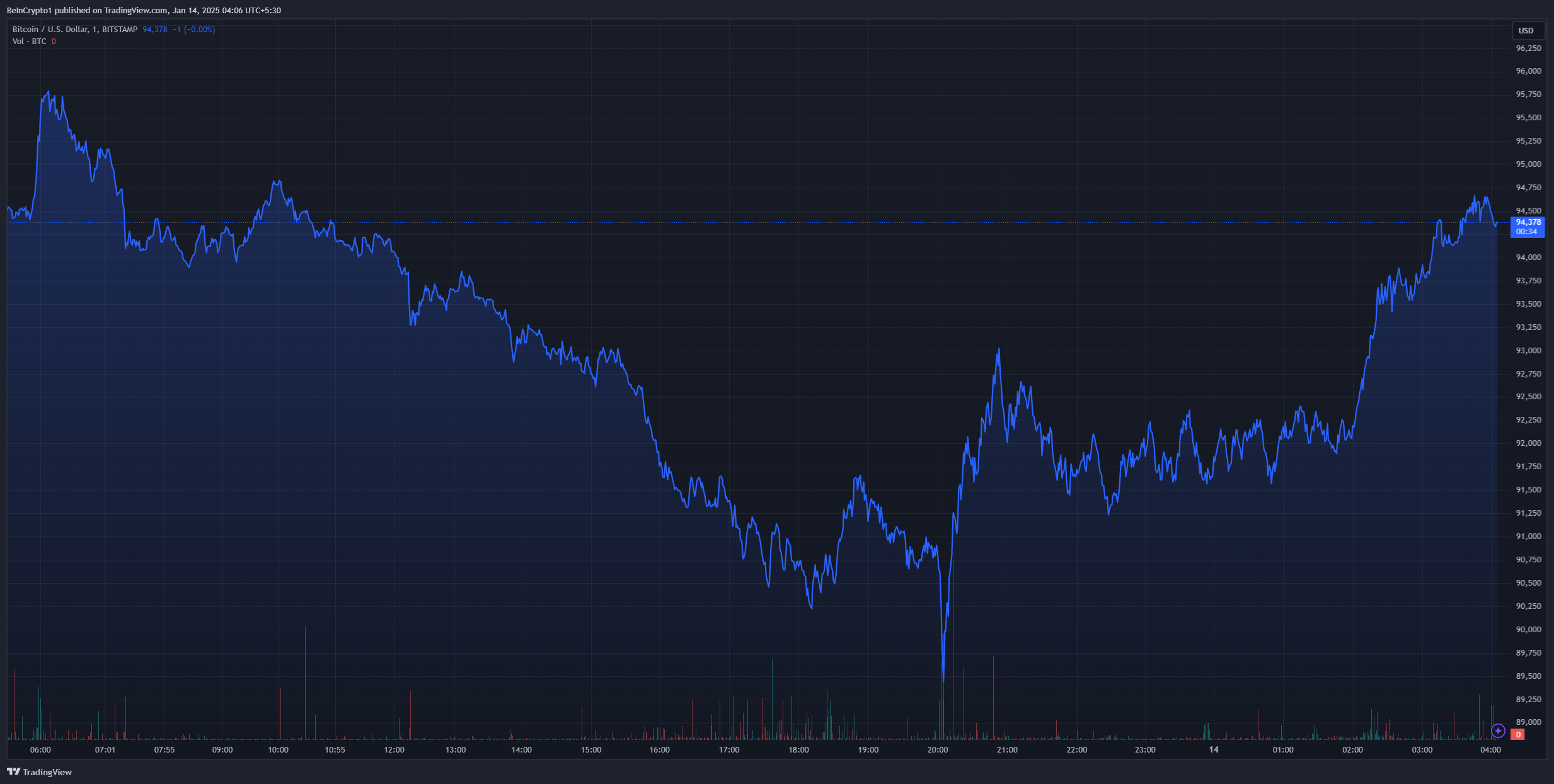 Dopo la notizia, il mercato crypto ha mostrato una forte ripresa dopo i cali iniziali all’inizio della giornata. Bitcoin era sceso a 89.000 USD, il suo livello più basso in due mesi. Dalla notizia, BTC è risalito a 94.500 USD al momento della segnalazione.