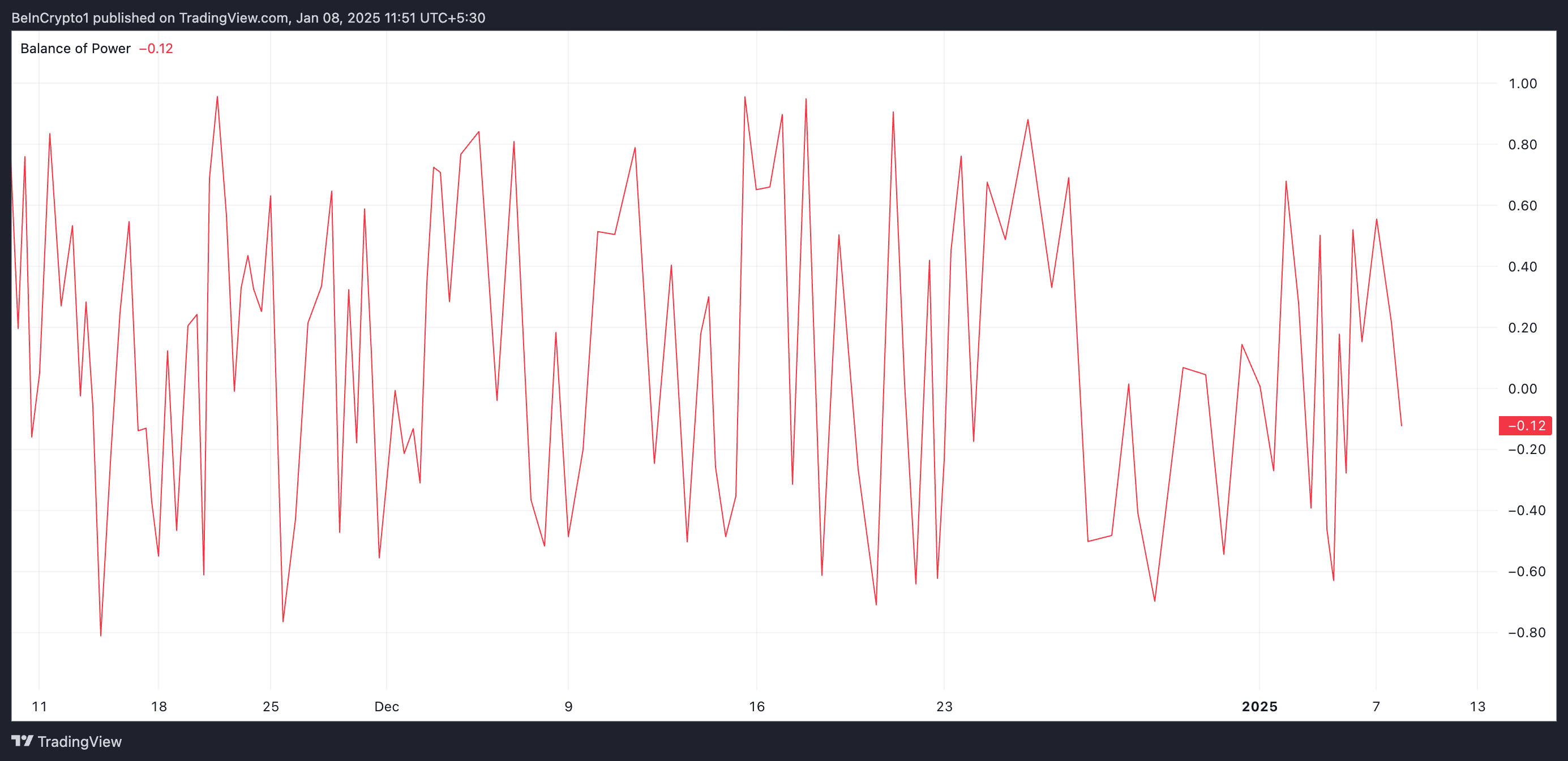 Il Balance of Power (BoP) di BGB, osservato su un grafico a 12 ore, suggerisce una potenziale correzione nel prezzo del token. Al momento della scrittura, l’indicatore è sotto zero a -0.12.