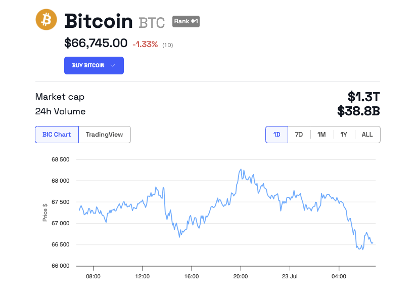 Nonostante queste grandi transazioni e la partecipazione attiva del mercato, il prezzo del Bitcoin è sceso dell’1,33% e attualmente si aggira intorno ai 66.745 dollari.