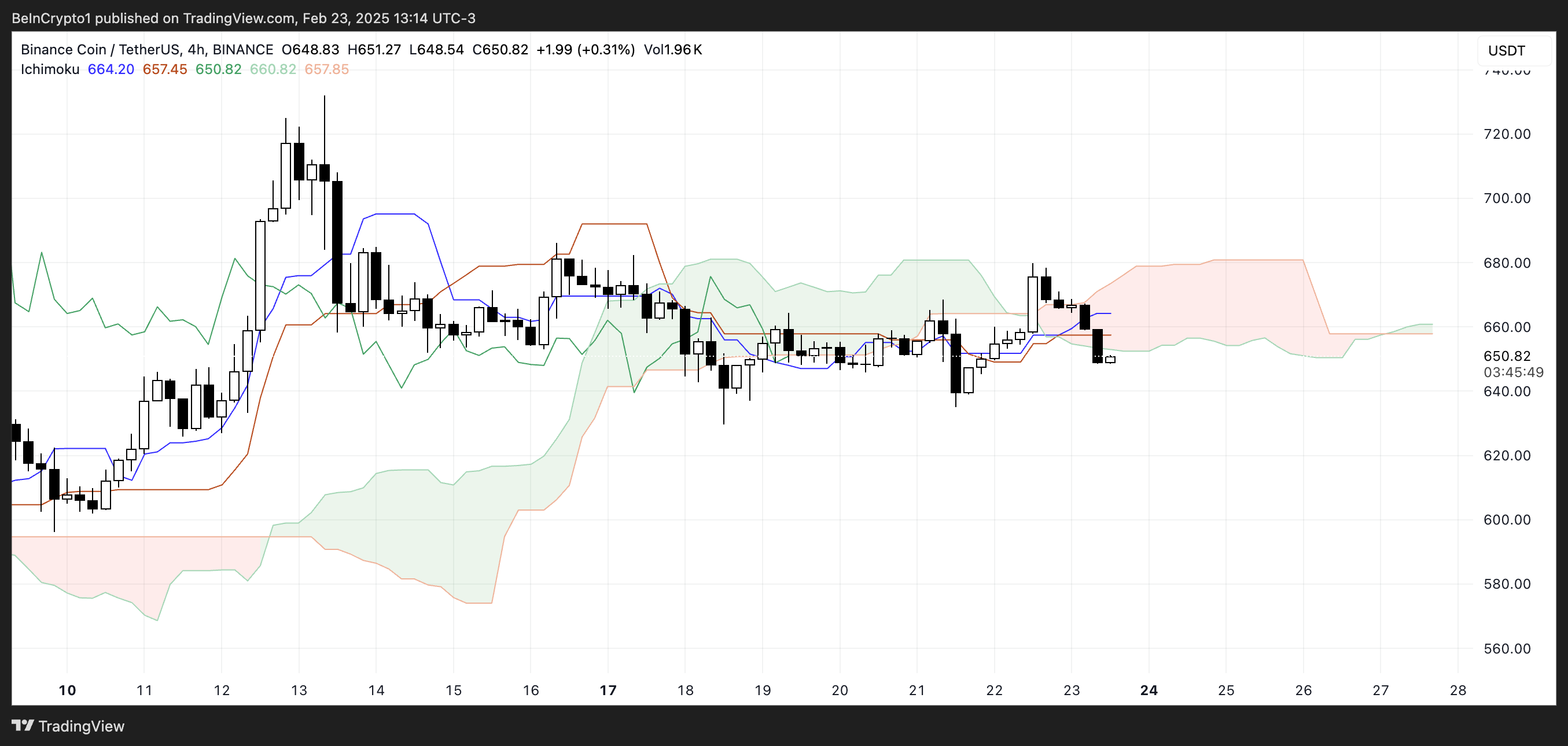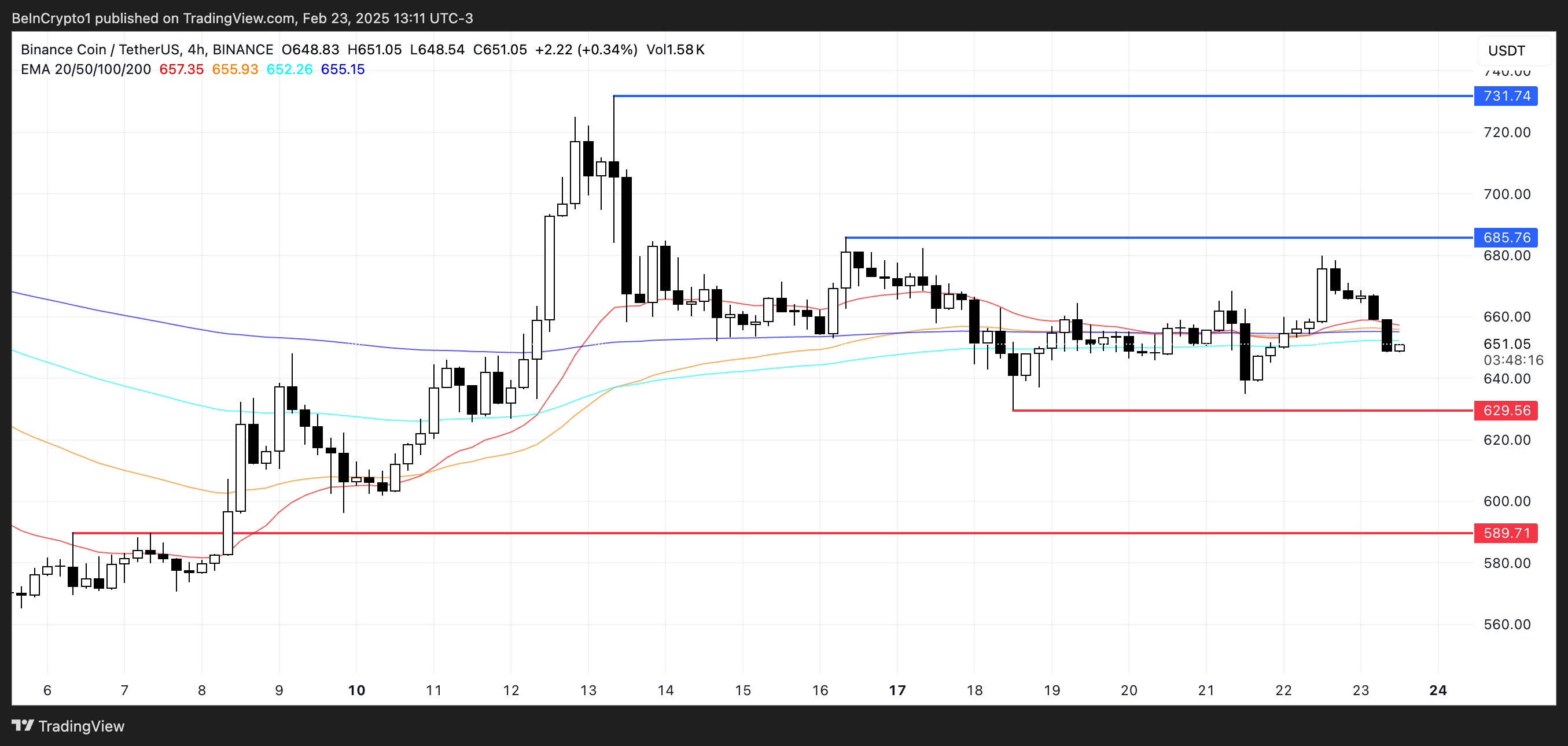 Tuttavia, se dovesse emergere un trend ribassista, il prezzo di BNB potrebbe testare il supporto a $629. Perdere questo livello potrebbe portare a un calo a $589, segnando la sua prima discesa sotto $600 dall’8 febbraio.
