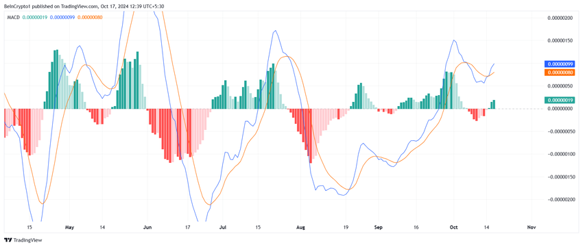 Il momentum macro generale per BONK è anche inclinato al rialzo, supportato da indicatori tecnici chiave. L’indicatore MACD è tornato in territorio rialzista dopo un breve periodo di ribasso. Questo cambio di momentum è critico per BONK, poiché si allinea con la tendenza rialzista più ampia vista nelle memecoin nel mercato delle criptovalute.